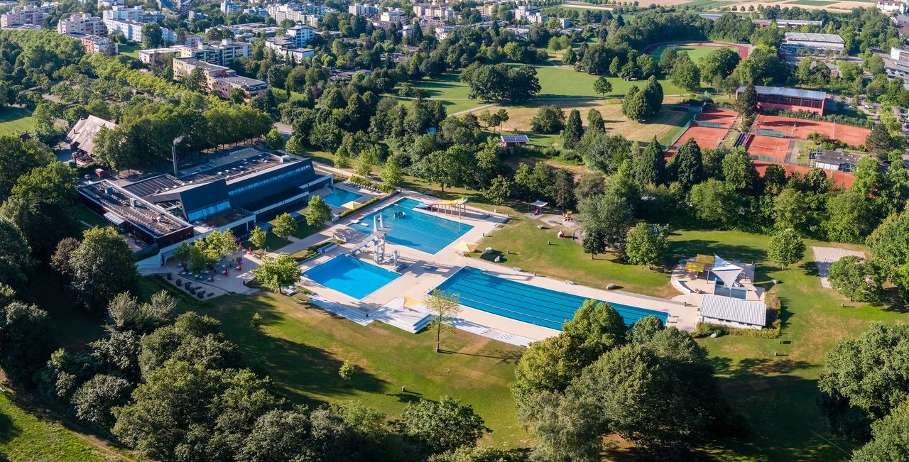 Das Sport & Familienbad aus der Luft
