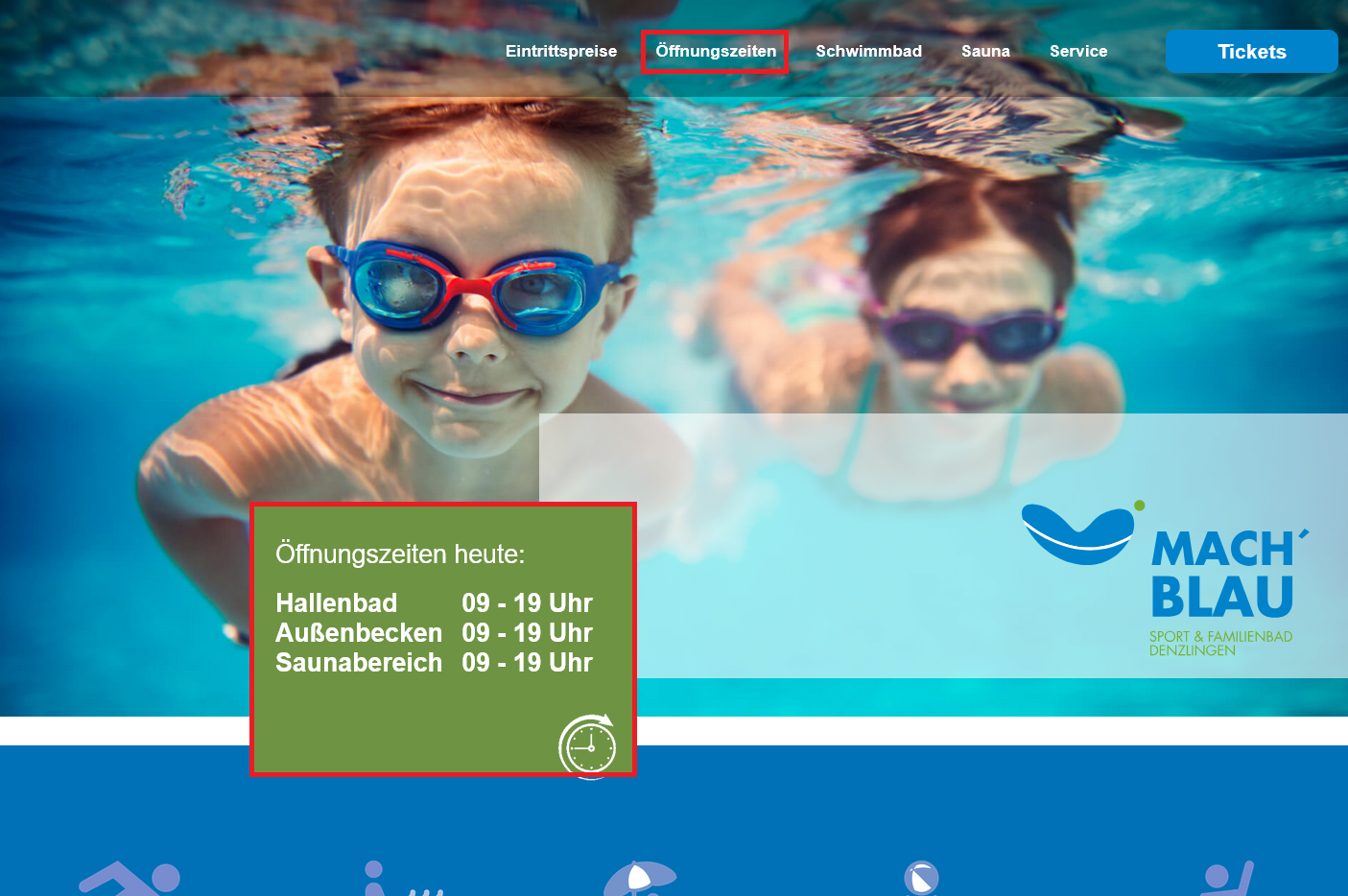Das ist die Seite des Sport & Familien · bad MACH' BLAU
